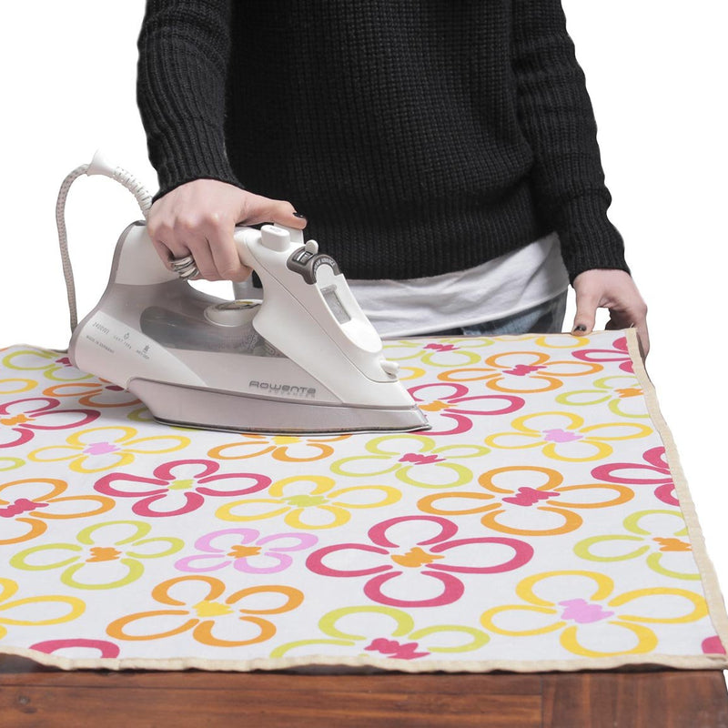 Il telo stiro luxury è ideale per stirare direttamente su una superficie piana, proteggendola dall'alta temperatura; è disponibile in decori assortiti. Composizione: 1 strato (tessuto stampato 50% poliestere, 50% cotone); 2 strato (feltro in poliestere assorbi umidità). Made in Italy