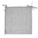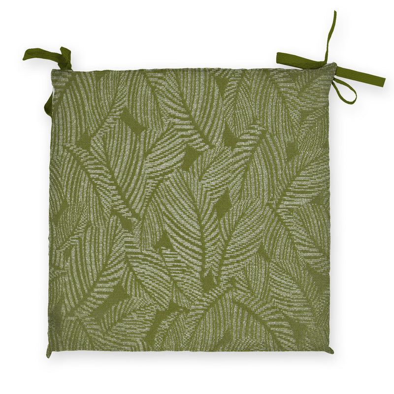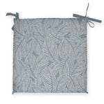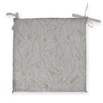Cuscino per sedia double face: fogliame e tinta unita realizzato con tessuto in poliestere. Imbottitura comoda e morbida. Misura: 39x39 cm. Spessore: 5 cm. Made in Italy