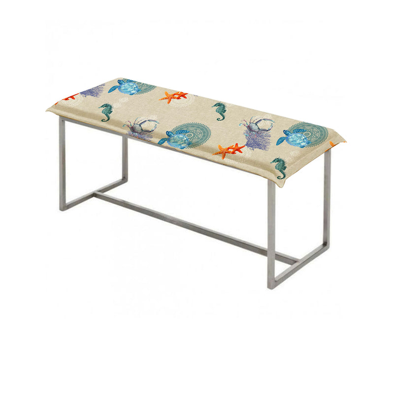 Cuscino per panchina antimacchia e sfoderabile. Misura: 44x106 cm. Spessore: 4 cm. Composizione tessuto: 50% Cotone, 50% Poliestere. Imbottitura: spugna 100% poliestere. La collezione giamaica è pensata per il giardino, la veranda e la spiaggia. Il tessuto è realizzato in misto cotone con trattamento antimacchia. Made in Italy
