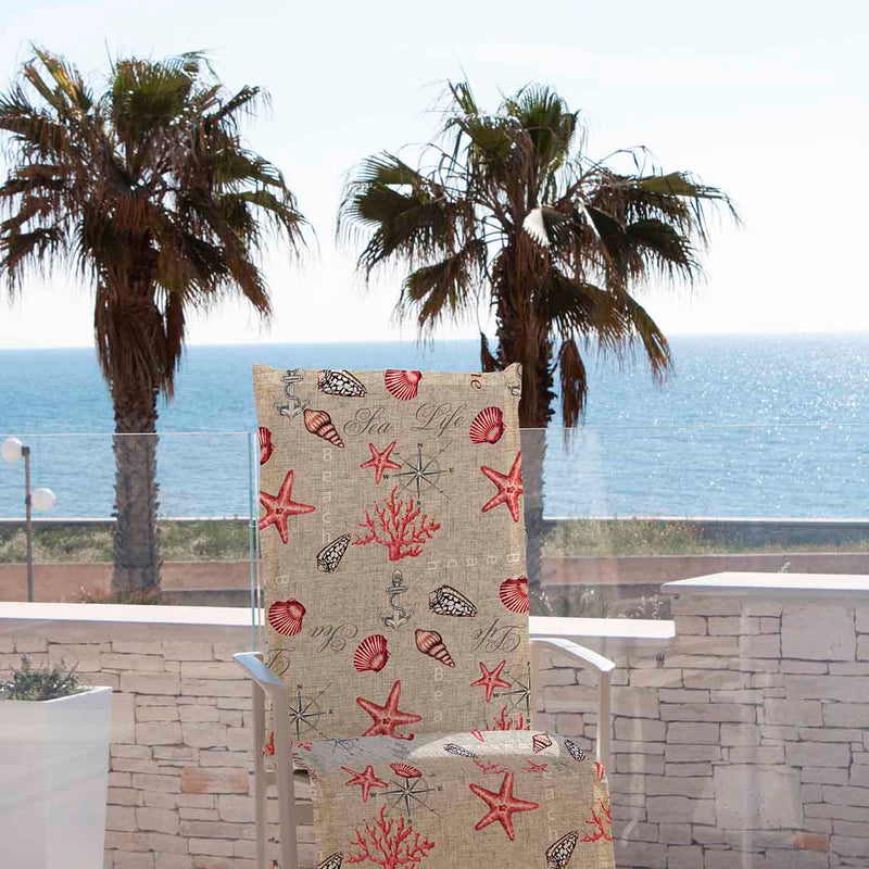 Cuscino per sdraio antimacchia e sfoderabile. Misura: 49x106 cm. Spessore: 4 cm. Composizione tessuto: 50% Cotone, 50% Poliestere. Imbottitura: spugna 100% poliestere. La collezione giamaica è pensata per il giardino, la veranda e la spiaggia. Il tessuto è realizzato in misto cotone con trattamento antimacchia. Made in Italy