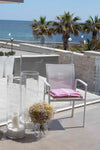 Cuscino per sedia antimacchia e sfoderabile. Misura: 44x44 cm. Spessore: 4 cm. Composizione tessuto: 50% Cotone, 50% Poliestere. Imbottitura: spugna 100% poliestere. La collezione giamaica è pensata per il giardino, la veranda e la spiaggia. Il tessuto è realizzato in misto cotone con trattamento antimacchia. Made in Italy