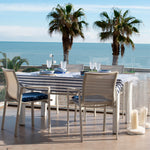Tovaglia Drill in tessuto morbido. Perfetta per tavoli da interno e da giardino che ospitano 4, 8 e 12 persone. Disponibile in 3 misure. Composizione tessuto: 50% Cotone 50% Poliestere. Made in Italy.
