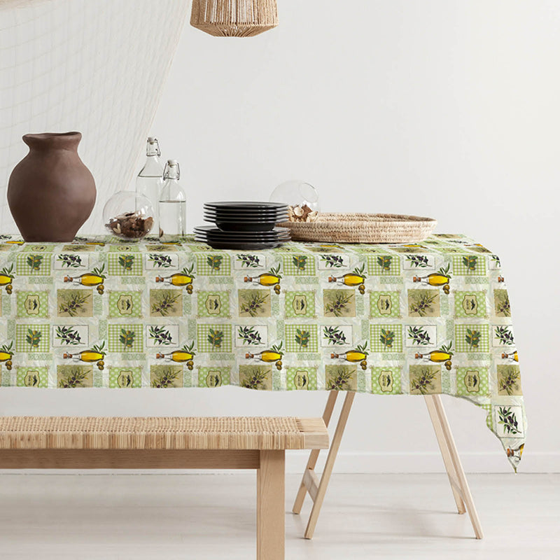 Tovaglia Armony in tessuto con trattamento antimacchia idro-oleo repellente. Perfetta per tavoli da interno e da giardino che ospitano 4, 8 e 12 persone. Made in Italy