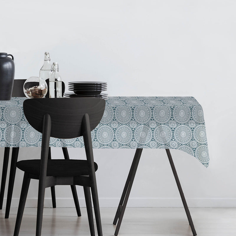 Tovaglia realizzata in PVC inciso effetto pizzo. Igienizzabile con alcool etilico, basta un panno umido. Ideale per decorare tavoli da interno, esterno e da giardino che ospitano 4, 8 e 12 persone. Made in Italy.