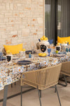 Tovaglia giamaica antimacchia disponibile in 3 misure. Composizione tessuto: 50% Cotone, 50% Poliestere. La collezione giamaica è pensata per il giardino, la veranda e la spiaggia. Il tessuto è realizzato in misto cotone con trattamento antimacchia. Made in Italy